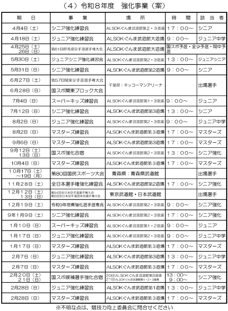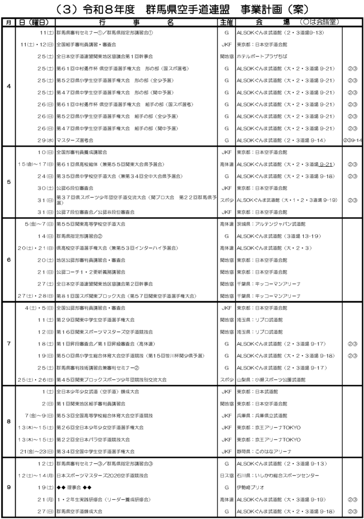 令和7年度の群馬県空手道連盟の事業計画を掲載いたします。